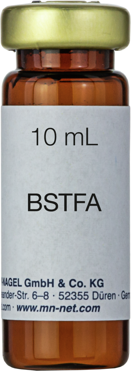 BSTFA is a silylation reagent for silylating fatty acid amides, hindered hydroxyls and other compounds, which are difficult to silylate (like secondary alcohols and amines). These products contain harmful substances which must be specially labeled as hazardous. For detailed information please see SDS.
