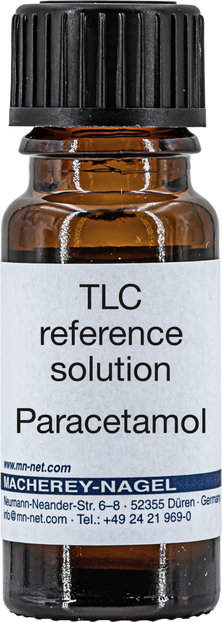 TLC-Vergleichslösung, Paracetamol. Dieses Produkt enthält kennzeichnungspflichtige Gefahrstoffe. Für detaillierte Informationen bitte das Sicherheitsdatenblatt beachten.