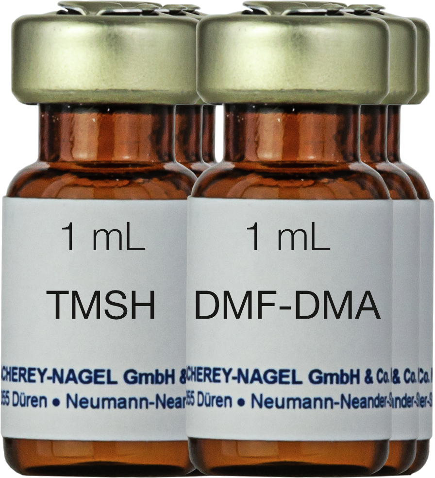 Verschiedene Derivatisierungsmittel in einem Kit zur Entwicklung einer geeigneten Derivatisierungsvemethode (Alkylierung). Diese Produkte enthalten kennzeichnungspflichtige Gefahrstoffe. Für detaillierte Informationen bitte das Sicherheitsdatenblatt beachten.