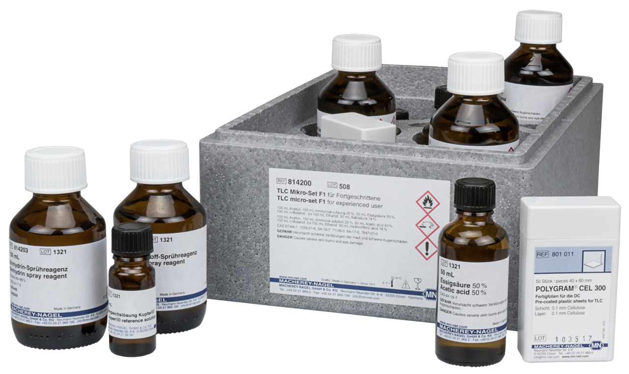 Micro-Set F1 ist das Fortgeschrittenenset 1 für den naturwissenschaftlichen Unterricht. Es enthält alle Chemikalien, die zur Trennung von – Aminosäuren (Testgemisch bestehend aus Alanin, Arginin, Tryptophan und Valin), Aminosäuren im Urin, Schwermetallkationen Kupfer(II) und Mangan(II) benötigt werden. Für dieTrennung mit Micro-Set F1 sind die Materialien von TLC Micro-Set M Voraussetzung. Dieses Produkt enthält kennzeichnungspflichtige Gefahrstoffe. Für detaillierte Informationen bitte das Sicherheitsdatenblatt beachten.